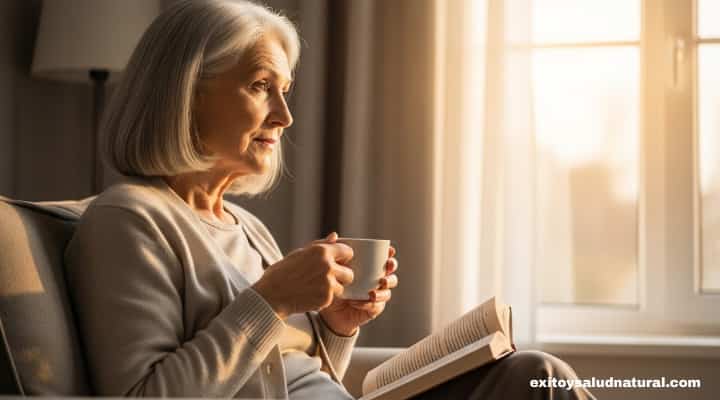 Una frase ideal para quienes están aprendiendo a vivir con menos ruido, menos cosas y más paz. Muy buscada por lectores interesados en minimalismo emocional, autocuidado y sabiduría práctica en la tercera edad.